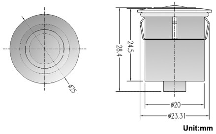 Φ 20 mm x 28.4 mm (Approx. Φ 0.8" x 1.1") | Built-in Lens |