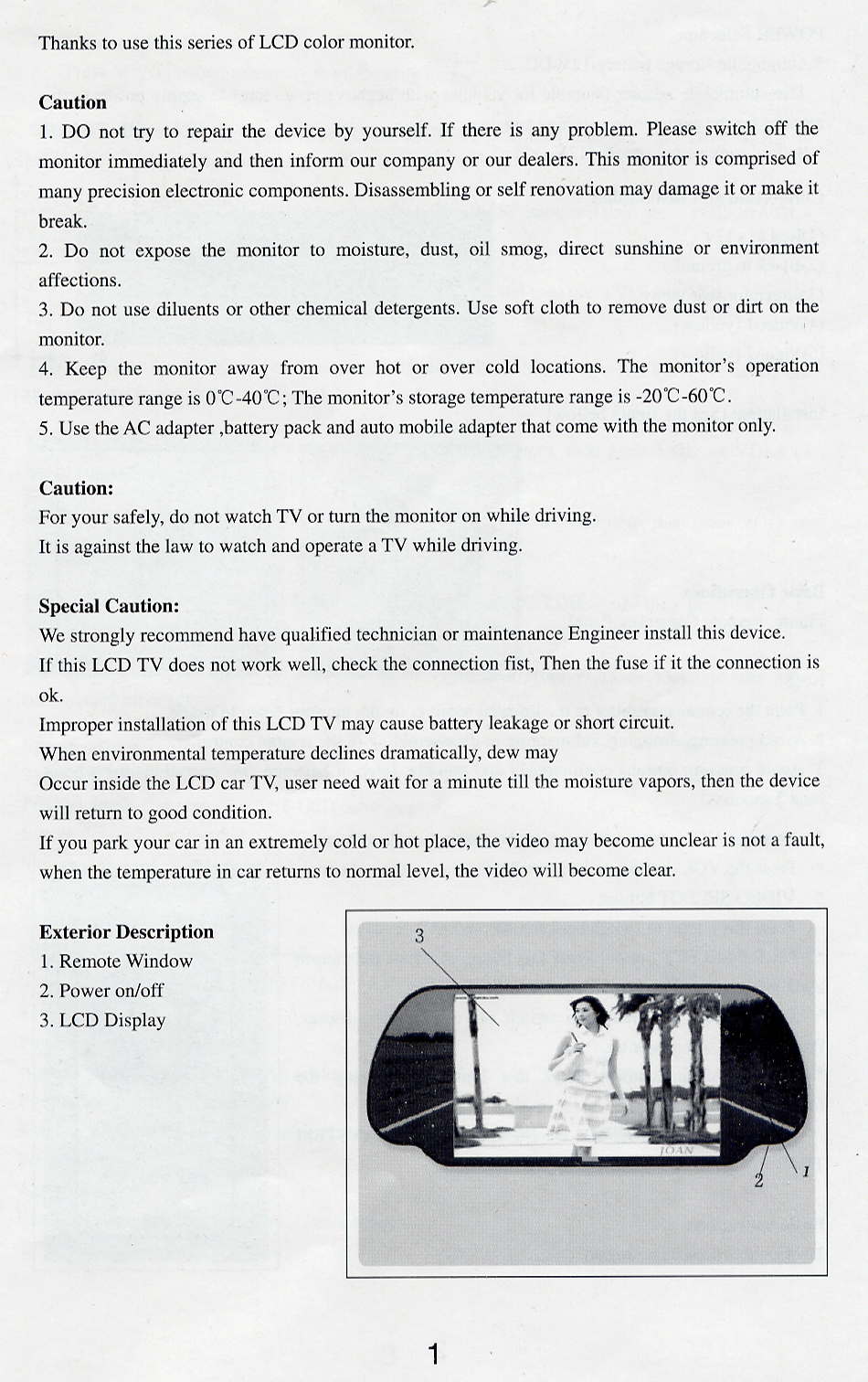 This Rear View Mirror TFT LCD