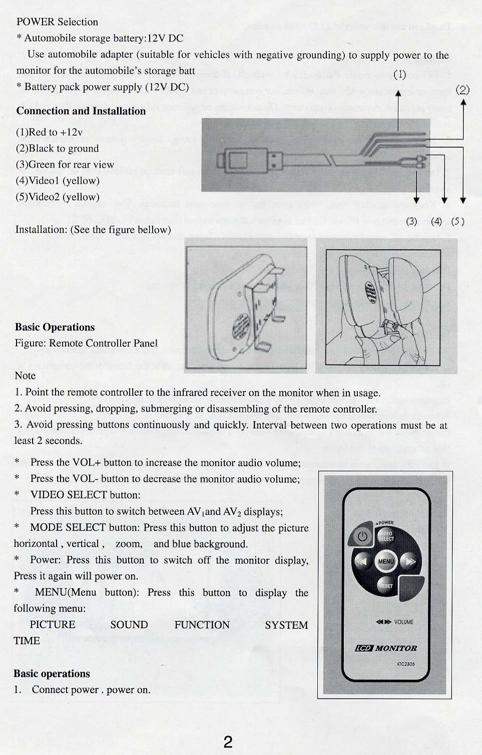 complete Vehicle Rear View Backup System. The monitor