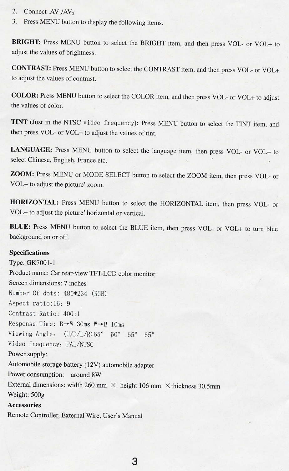 | Display Screen | 6.8" Color TFT | Pixel | 480 x 234 (RGB) |